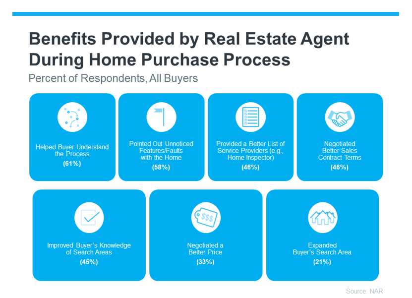NAR release of the many ways an agent adds value. It includes the percentage of homebuyers in that report who highlighted each of these benefits: